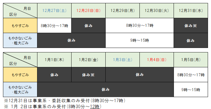 | 令和7年度 年末年始のごみ受入れ日程について |